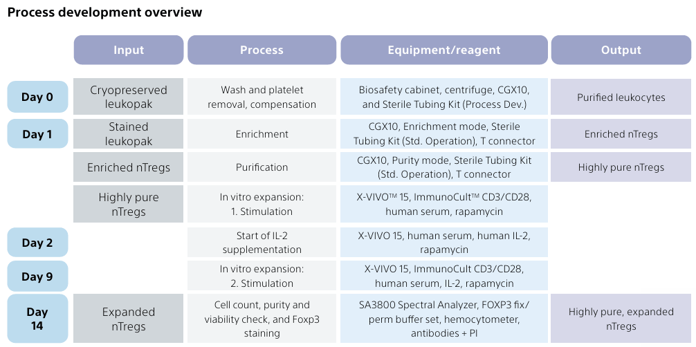 Sony CGX10 的兩步驟分選工作流程示意圖,展現了從 Leukopak 到高純度 nTregs 的完整路徑。