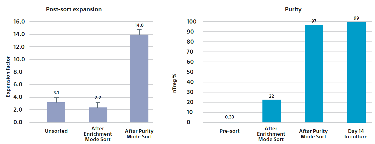 Purity Mode (純化模式): 接著將富集後的細胞再次上機,進行高精度的純化分選,最終獲得純度 >97%、且保持高度活性的 nTregs。